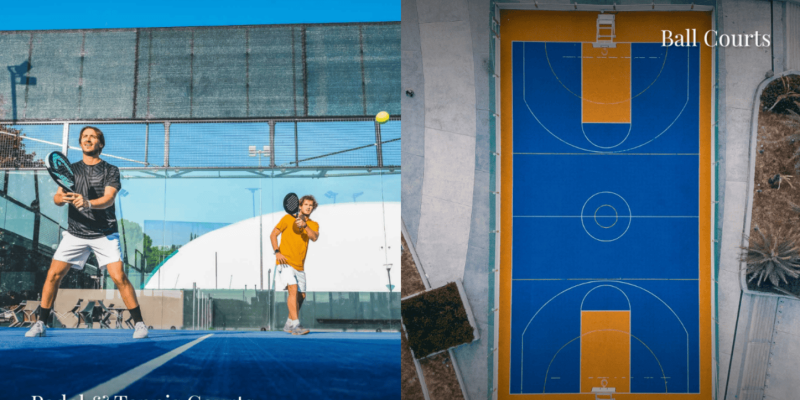 تشمل المرافق الرياضية ملاعب بادل وتنس، ملاعب كرة سلة، مراكز لياقة بدنية، صالات رياضية، ملاعب كرة قدم وكريكيت، ومسارات للجري وركوب الدراجات.
