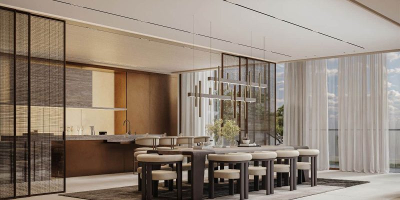 تتفرد أوموريا برايفت ريزيدنسز بمزيجها النادر من الضيافة اليابانية والتصميم الإيطالي، لتوفر بيئة سكنية غنية ثقافياً وراقية جمالياً. كل وحدة سكنية مؤثثة بعناية فائقة بتصاميم داخلية إيطالية مصنوعة خصيصاً من الحجر الطبيعي والخشب والتشطيبات الأنيقة التي ترفع مستوى الفخامة إلى معايير غير مسبوقة. توفر النوافذ الممتدة من الأرض حتى السقف والتراسات الواسعة إطلالات خلابة على الخليج العربي، بينما تم تصميم المساحات لتعزيز الإضاءة الطبيعية والتدفق والهدوء. هذا الاهتمام الدقيق بالتفاصيل في التصميم والحرفية يجعل من كل منزل ملاذاً حقيقياً، مما يميز أوموريا كمشروع يتجاوز مفهوم السكن إلى تجربة معيشية فاخرة تنبض بالأناقة والسكينة.