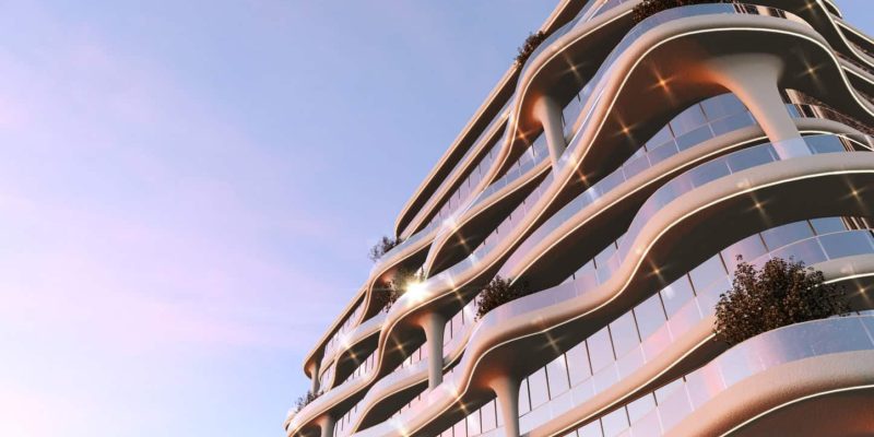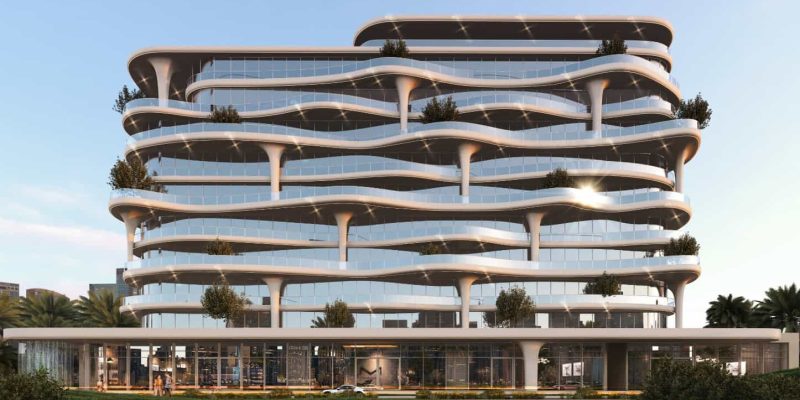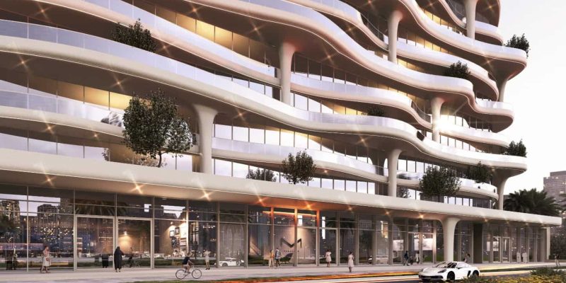 This canal facing, coral inspired Coralis G+10 building is located at the Meydan Riviera promenade with soft organic balconies and precision glazes replicating the rhythm of the sea. The piece is serene and architectural to the exterior, before transitioning to a resort-calming podium where water, greenery, and shaded seating assist in the transitioning of city life to a waterfront lifestyle. On higher floors, one-, two-, and three-bedroom homes will be positioned with a light and outlook towards the canal to the Downtown.