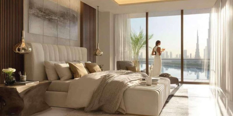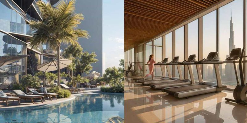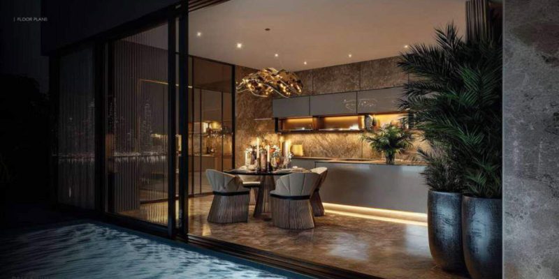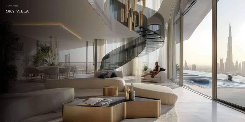 Small-scale boutique, resort lifestyle. The project provides daily use amenities without crowds of hotelers, with the only G +10 levels, and with a podium that is dedicated to leisure, paddle tennis, water edges, pool scenes, and a glazed fitness studio. The Sky Villas provide a real upper-end choice (self-service lifts, panoramic views), whereas the address will put you in the minutes away of the Downtown and Dubai Design District, with the door leading to the Riviera-style boardwalk.
