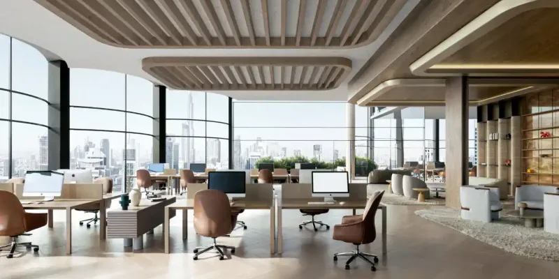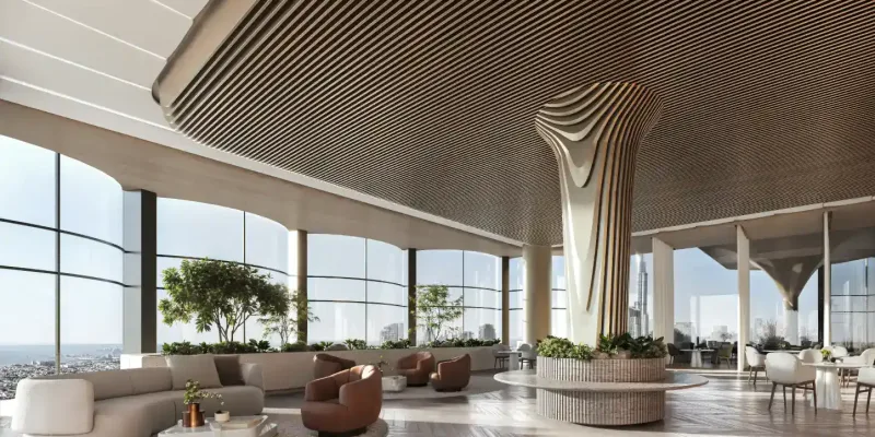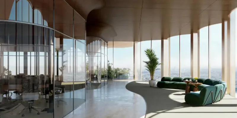 Omniyat has strove to create a luxurious and practical work life culture in the development of Lumena visible by the amenities provided and ease of access due to its prime location being situated in the heart of Dubai. Lumena is elegant in its architecture, lifestyle and services offering sophisticated amenities like the Sky Theatre, Retail Podium, À LA CARTE services and shared workspaces. The luxurious interiors, direct connectivity, prime location, panoramic views, extravagant amenities and high end services all harmonize to make Lumena a unique office building and work life. The elegance and sophistication of Lumena reflects on its exterior as a prominent architectural piece standing out amongst the buildings of Dubai described as increasingly attuned to the horizon. The project is delivered in shell & core with ceilings reach 3-meter heights and common area washrooms, each office features its own limited number of parking spaces to cater for each business.