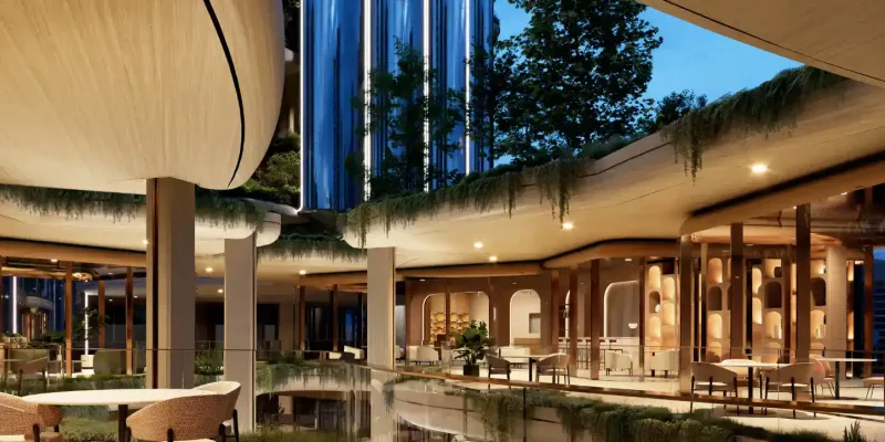 The Outdoor Rejuvenation Terrace is an attractive landscaped garden situated on a high floor of Lumena where owners and tenants can revitalize.