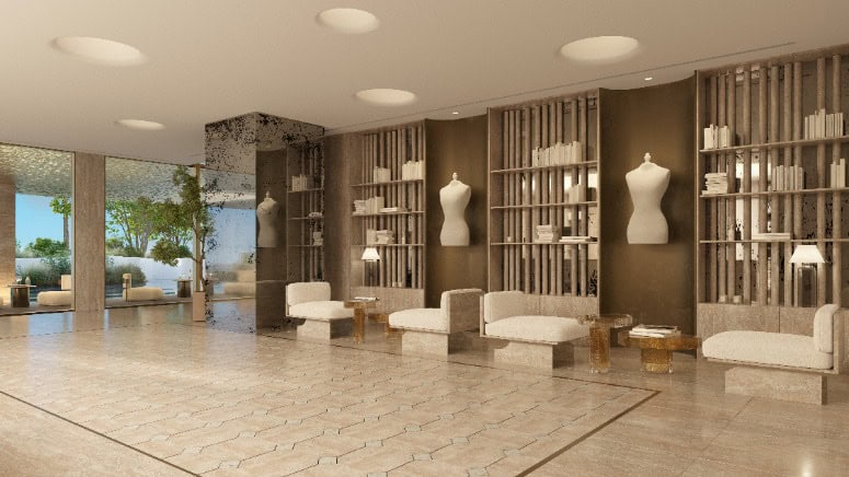 The Curated Library is conceived as a quiet chamber for thought—a tonal, light-softened room where the Maison’s ethos replaces spectacle with intimacy: shelves and surfaces in calm materials invite unhurried browsing, while the palette of nuanced “Margiela whites” and revealed details (the celebrated “anonymity of the lining”) turn stillness into a tactile experience.More than a “reading room,” it extends the project’s philosophy that amenities are spatial continuations of the Maison’s worldview—elegant, discreet, and intuitively comfortable—so residents can shift from the gallery to the library to private lounges as a seamless cultural ritual. Listed among the core lifestyle spaces alongside the art gallery and screening room, it’s designed for contemplation, quiet work, and serendipitous discovery—where pages, textures, and light become part of the daily cadence of home.