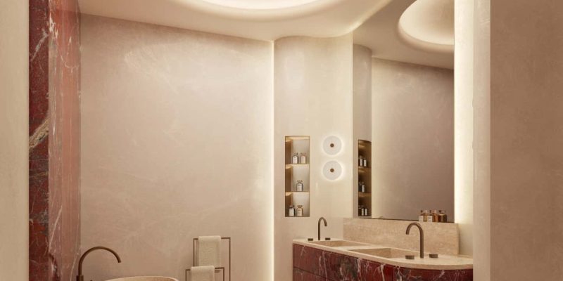 Maison Margiela Residences will apply the Maison couture philosophy to the realm of architecture: decortiqué details, tonal whites, and rough-sophisticated textures creating effects of light and space. In conversation with the creative universe of Margiela, Interior is designed with customized materials such as travertine, marmorino, and brush metal, which make them look quiet, elegant, and dimensional.