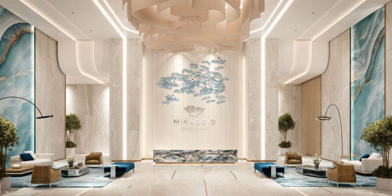 Miraggio is located in a prime location in Ras Al Khaimah on Al Marjan Island, blending seamlessly with its stunning natural surroundings. Everything has been meticulously designed to blend art, architecture, and nature. Miraggio boasts a prime waterfront location and an integrated, natural design that blends seamlessly with the state-of-the-art control center. The Power Source Zones offer a nature-protected lounge, a spacious, open space with access to a green area, canopy, azure waters, comfortable seating, and fireplaces. Modern, natural gardens add a distinctive character to Miraggio