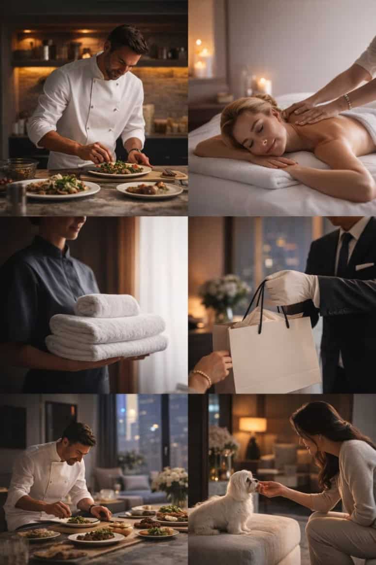 Included essentials: cultural concierge, doormen/valet, security, common-area housekeeping, insurance, utilities and Wi-Fi. On-demand, pay-per-use support adds chauffeured transfers, housekeeping, laundry/tailoring, in-residence maintenance, pet care, childcare/tutors, residence check-ins during travel, personal shopping, private chef/dining, personal trainer and massage. Owners also enjoy Accor Owner Benefits (global VIP status: upgrades, preferred rates, and a dedicated travel desk).