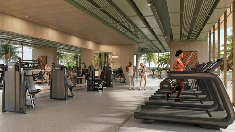 A performance-led fitness studio aligned to palm-framed views.
