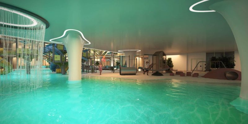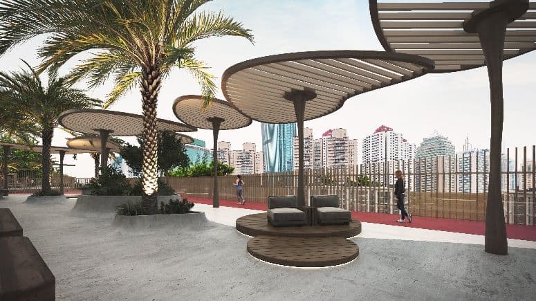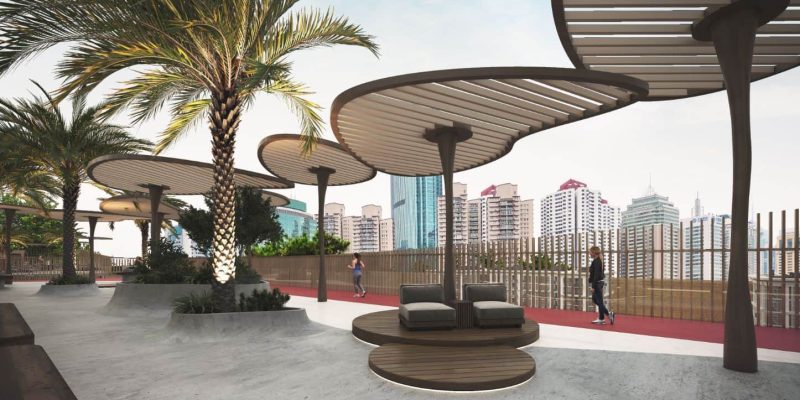 Set safely above the lagoon, the kids’ rooftop play area pairs soft-fall flooring and shaded nooks with age-friendly climbing frames and slides—so little ones can play freely with skyline views. Thoughtful sightlines and nearby seating keep parents close and comfortable, making it easy to drift from playtime to a sunset swim or movie night on the same deck.