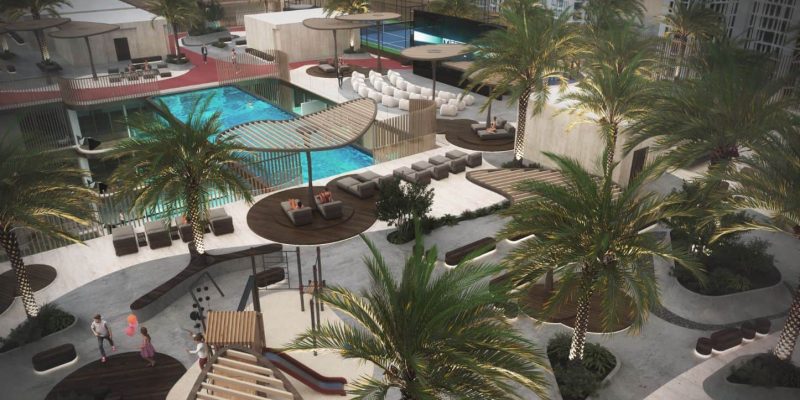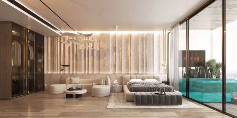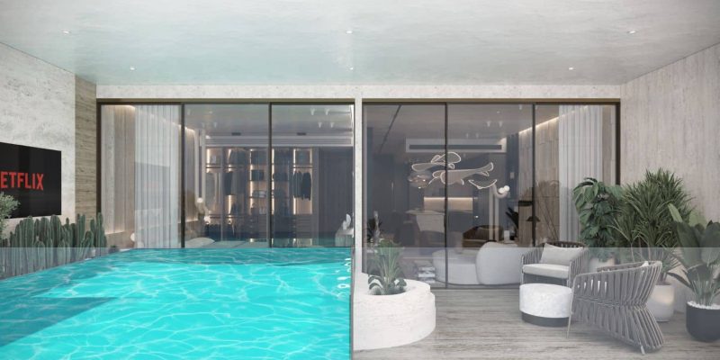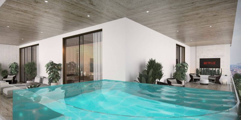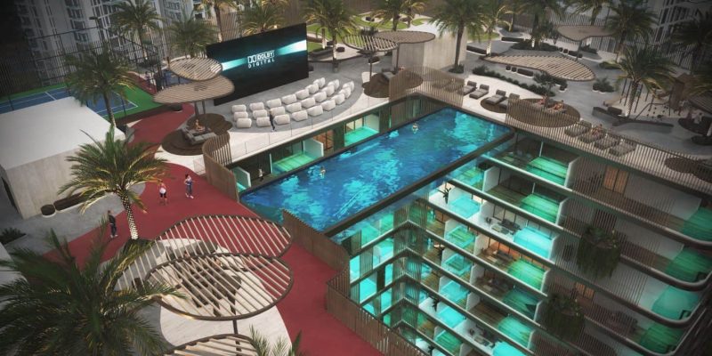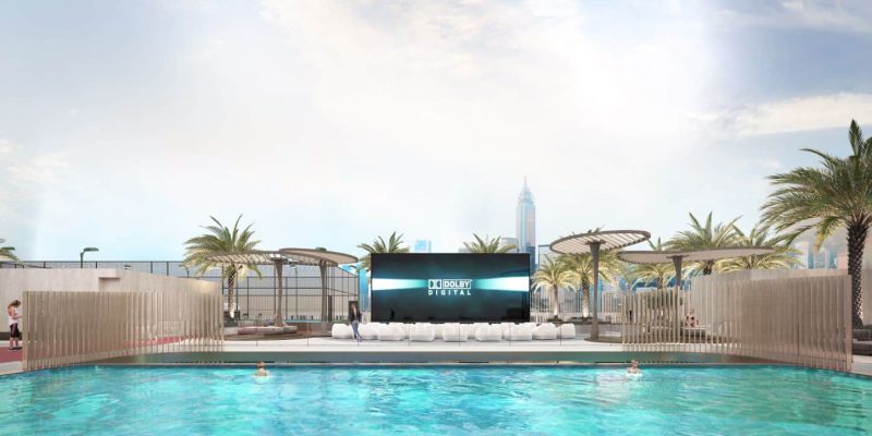 An elevated infinity pool merges seamlessly with the skyline, while a rooftop outdoor cinema transforms evenings into unforgettable experiences, blending leisure, entertainment, and breathtaking views in one unique setting.