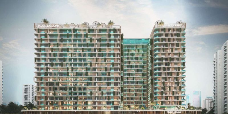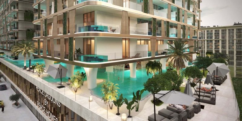 Peace Lagoons II is a residential community in Dubai Residence Complex, crafted to combine modern design with resort-style tranquility. The project features 830 residences ranging from studios to one- and two-bedroom apartments, each thoughtfully planned with private pools and terraces that elevate everyday living into an exclusive retreat. At the center lies a crystal-clear man-made lagoon surrounded by lush landscaping, while the interiors are defined by premium finishes, smart layouts, and seamless indoor-outdoor connections. A grand lobby welcomes residents and guests with sophistication, setting the tone for the high standards of the community.