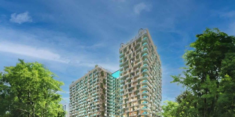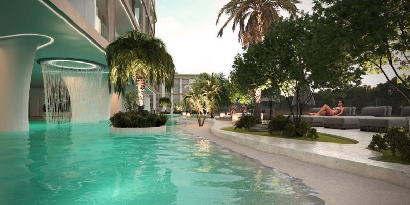 Apartments are built around a central lagoon, many with their own small private pools, so the project looks and feels more like a small resort than a standard city building. Such homes are easier to market and can justify a higher rent than basic buildings in the same area.