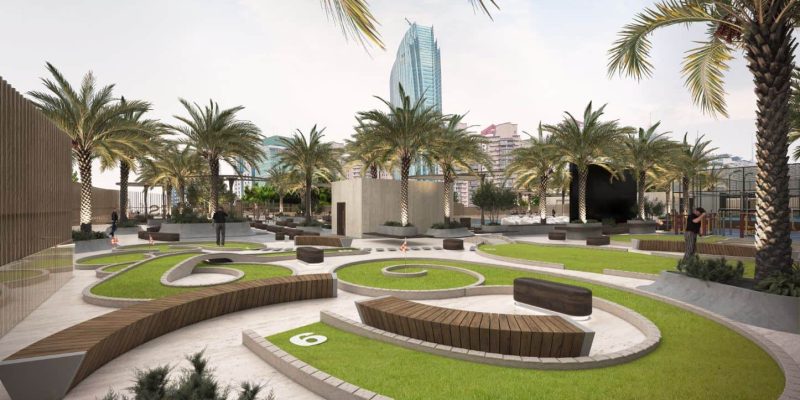 Perched on the rooftop, the mini-golf course brings playful sky-level leisure to daily life, with contoured greens, soft evening lighting, and open views that turn a quick round into a sundown ritual. Steps from the infinity pool and outdoor cinema, it anchors the rooftop’s social energy—ideal for family fun, friendly putting contests, and memorable photo-ops high above the city.