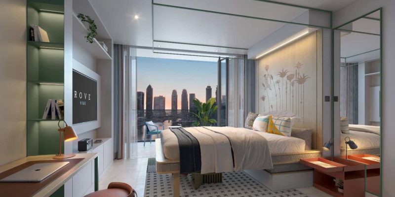 Business Bay serves as the central location for Rove Home Marasi Drive which offers completely equipped hotel-branded residences. Rove Home Marasi Drive features an array of modern amenities such as a floating podium together with sky gardens infinity pool outdoor gym and co-working spaces present to suit 50+ premium needs. The strategic position provides residents straightforward transportation to Sheikh Zayed Road and Downtown Dubai and Dubai Canal through their convenient location. Professionals and families along with investors can find the perfect residence in this lively community due to its combination of luxury and comfort with convenient access to everything