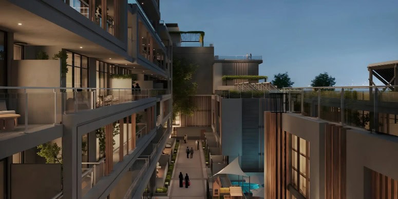 An internal courtyard that is softly lit and at the same time gives a feeling of privacy and community. Consider evening walks, tranquil chats and a sense of neighbourhood within the building- all augmented with greenery, layered lights and well designed walkways