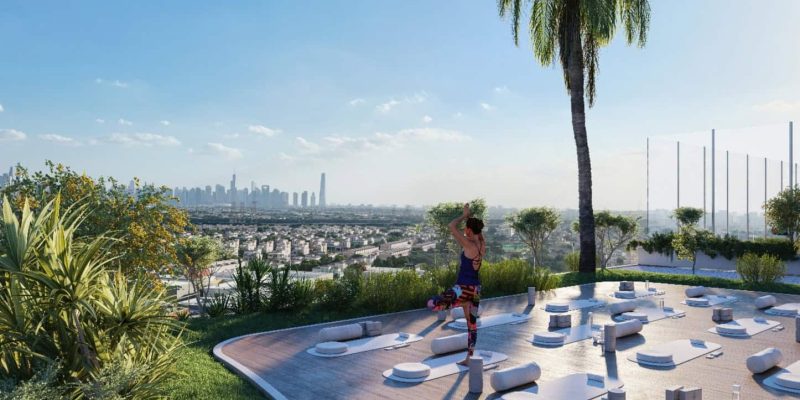 The open air Yoga Deck is a serene space for residents to soak in the skyline views while they exercise and rejuvenate both the mind and body.