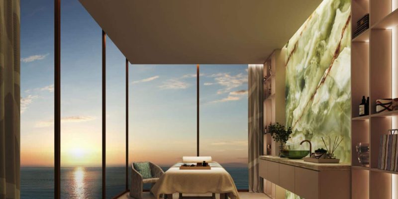 La sala de tratamientos es una sala de lujo con servicios de alta calidad, todos ellos ofrecidos con vistas panorámicas al mar.