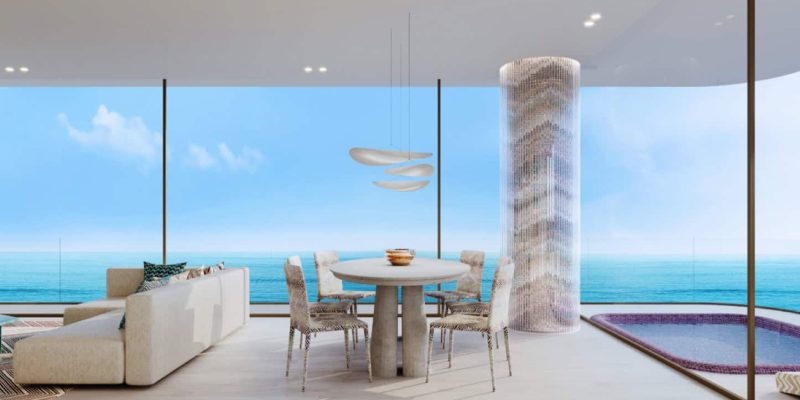 El Mirador es un espacio común lujoso y cómodo para los residentes de Trio Isle, donde pueden relajarse, socializar y disfrutar de impresionantes vistas al mar. El Mirador también cuenta con chimenea, bar en la piscina y comedor.