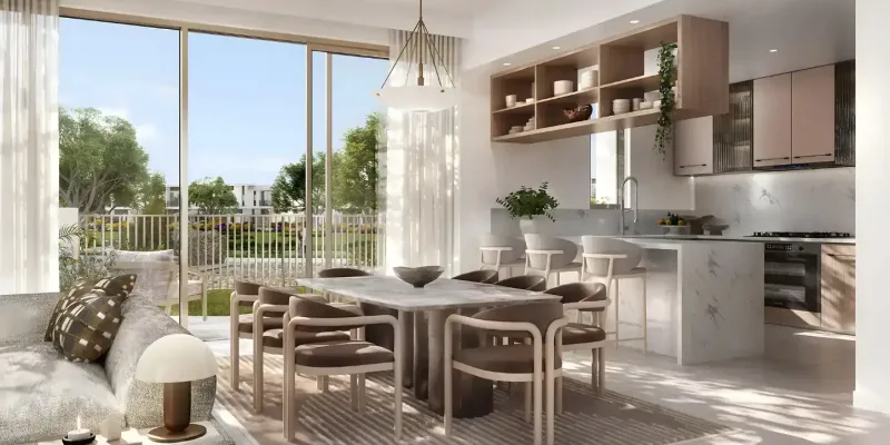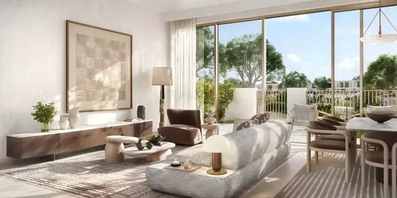Wat Vindera uniek maakt, is de naadloze integratie van natuur met modern gezinsleven. In tegenstelling tot veel townhouse-gemeenschappen in Dubai is Vindera ontworpen rond meeslepende groene landschappen, met bospaden, bloemenvelden en ontdekkingspaden die bewoners dichter bij de natuur brengen. De woningen zelf worden versterkt door een zachte, natuurlijke vormentaal — open plattegronden, royale ramen en rustgevende interieurs — die harmoniëren met de omgeving en tegelijkertijd eigentijdse elegantie behouden. Deze balans van architectuur en natuur creëert een zeldzame levensstijl waar rust en verfijning samenkomen.