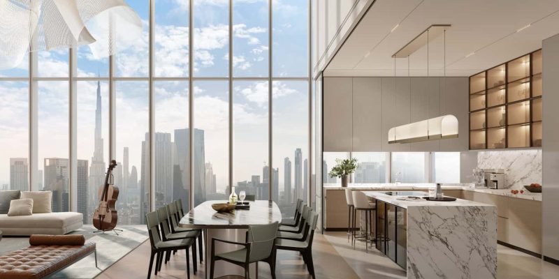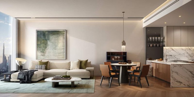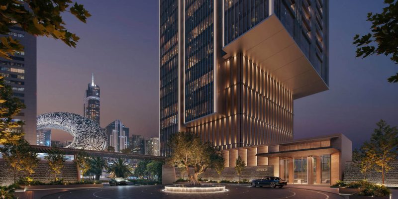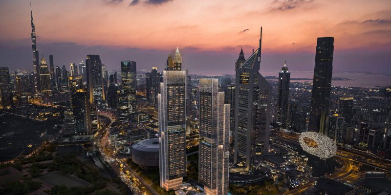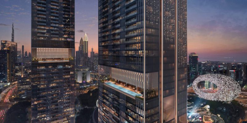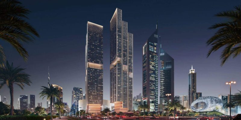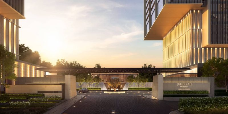 Jumeirah Residences Emirates Towers este un viitor complex arhitectural emblematic cu 2 turnuri, proiectat de Meraas și prezentat de Jumeirah Residences: un brand de dezvoltare rezidențială ultra-luxoasă și cu servicii complete. Arhitectura sofisticată a clădirii este structurată astfel încât să pară plutitoare, susținută de piloni aproape invizibili, simbolizând elevația în orizontul ambiental al centrului orașului Dubai. Interioarele în nuanțe de crem redefinesc viața de lux, cu o aură caldă compusă din lemn și marmură. Ambele turnuri oferă facilități luxoase și designuri generoase, cu avantajul de a fi amplasate în inima Dubaiului, fiind compuse din apartamente cu 1-4 dormitoare, existând o gamă vastă de configurații pentru fiecare dormitor, ajungând chiar până la 21 de configurații diferite pentru un apartament cu 2 dormitoare și 12 pentru un apartament cu 1 dormitor.