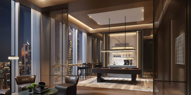 Jumeirah Residences Emirates Towers se remarcă prin designul său incredibil de unic, construit pe piloni aproape invizibili, care par a fi plutitori, separați de două clădiri individuale și, prin urmare, pe cale să devină un punct de reper emblematic. De asemenea, poate fi considerat a fi situat în cea mai bună locație, deoarece principalele facilități și atracții turistice se află în apropiere. Emirates Towers este proiectat de Jumeirah Residences și, prin urmare, se așteaptă să fie una dintre cele mai luxoase și sofisticate reședințe din Dubai. Facilitățile din clădire sunt numeroase și includ: piscine infinite, servicii de menaj, grădini panoramice, săli de jocuri, spații de co-working, terasă pentru evenimente, restaurant, sală multifuncțională, zone de grătar, saună și baie cu aburi, salon de înfrumusețare și serviciile exclusive Jumeirah. Emirates Towers a asigurat un nivel ridicat de stil de viață, cu numeroase servicii unice, cum ar fi servicii de cumpărături alimentare, spălătorie, servicii de agrement potrivite pentru cei care călătoresc mult sau pentru investitorii care trebuie să își întrețină apartamentele, îngrijire copii, îngrijire auto, transport, servicii de întreținere, salon de înfrumusețare și servicii de antrenor personal.