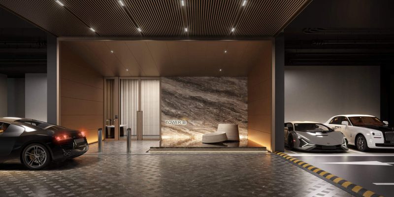 Garajul este un spațiu luxos care oferă o zonă de relaxare confortabilă și servicii de valet pentru a readuce în valoare stilul de viață luxos. Acest hol de la subsol este conceput special pentru parcare și este o completare la holul standard generos de la parter, cu pază și concierge 24/7.